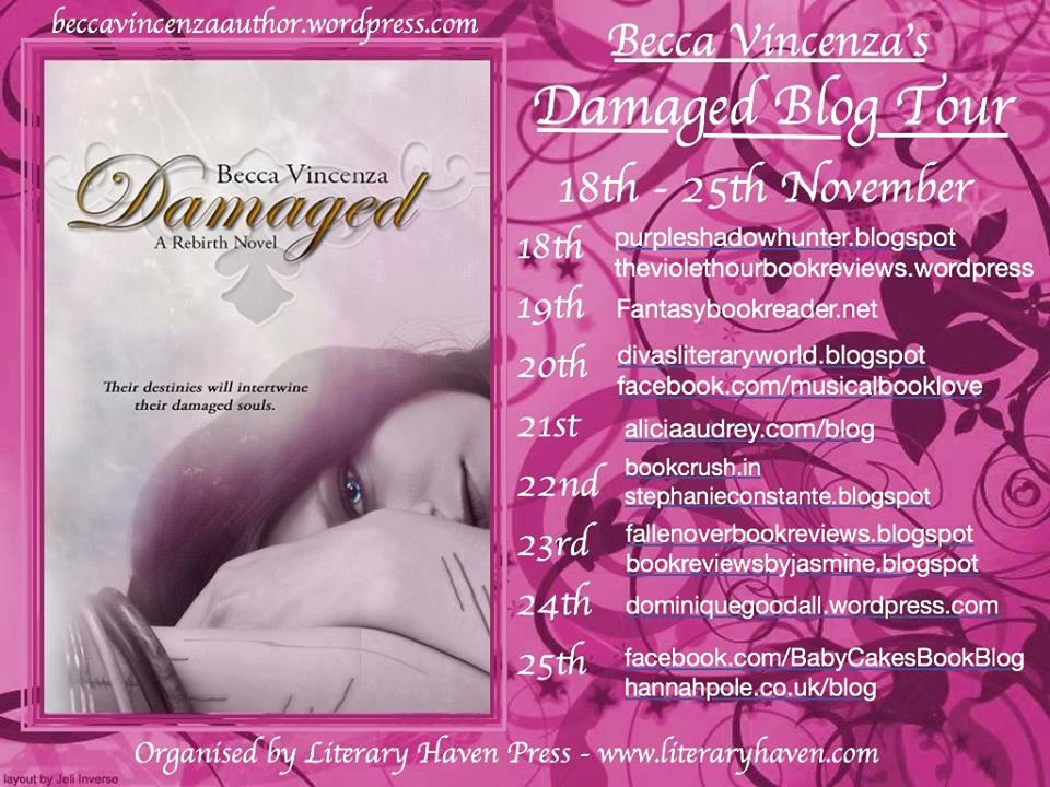 A HUGE HUGE HUGE HUGE thank you to my partner and one of my best friends Hannah Pole. She is such a peach for allowing this to be our first real trial run at a blog tour. I couldn’t be more thrilled. This is such an amazing opportunity for me. I know I don’t have a lot of followers, and I know that I pushed back the date release on my book, but I am so glad for the people who have been supporting me this whole way through. I love you guys so much you are all wonderful and I am hoping Damaged lives up to your expectations. And to thank you and the bloggers helping me out I am offering up two ARC copies of Damaged in a rafflecopter. I hope you check out each day along the tour as each day will have a different teaser banner.